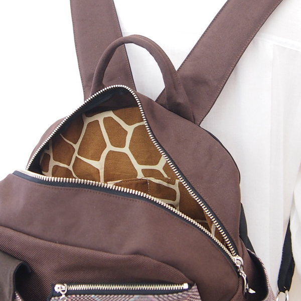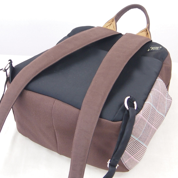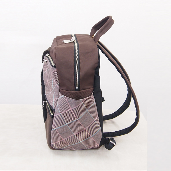 Wide Backpack * Pink Mint Brown Check(幅広いリュック・ピンクミント茶チェック柄)