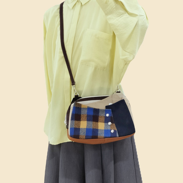 Shoulder M * Brown Yellow Blue Check(ショルダーM・茶黄青チェック柄)
