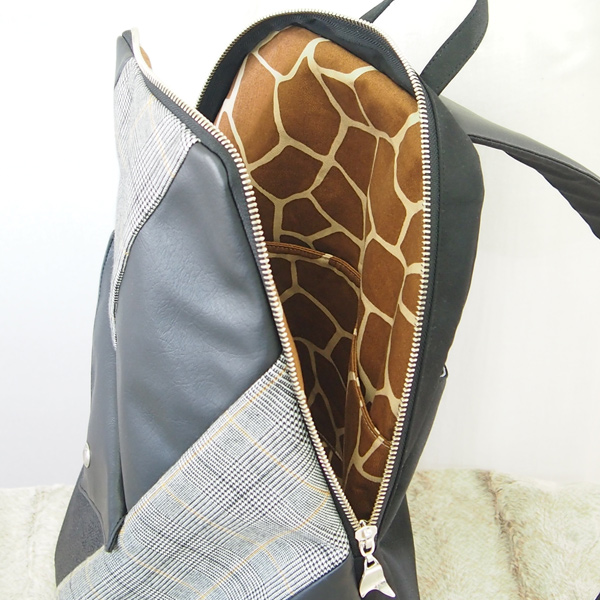 Slim Backpack * Black Leater & Glencheck(スリムなリュック・黒レザーとグレンチェック)