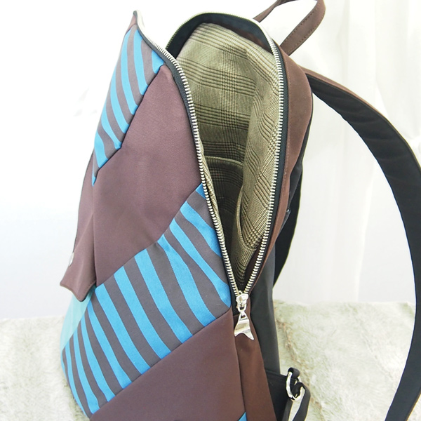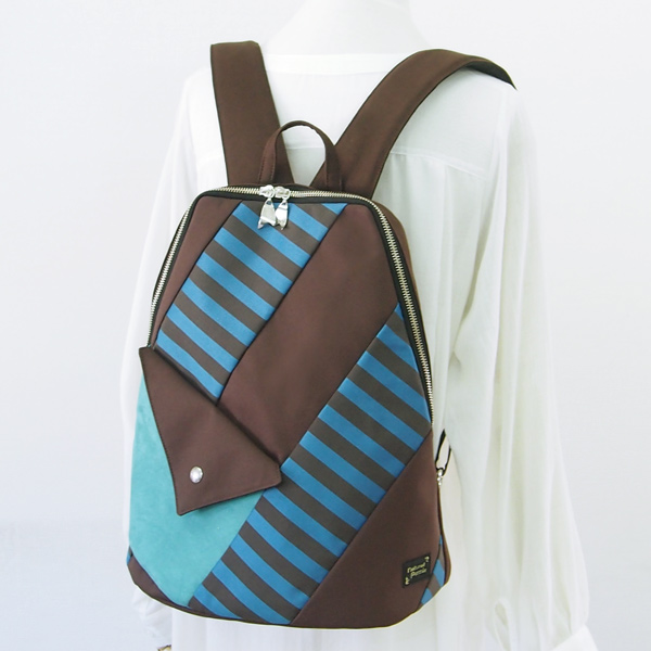 Slim Backpack * Light Blue Border & Brown(スリムなリュック・水色ボーダーと茶)