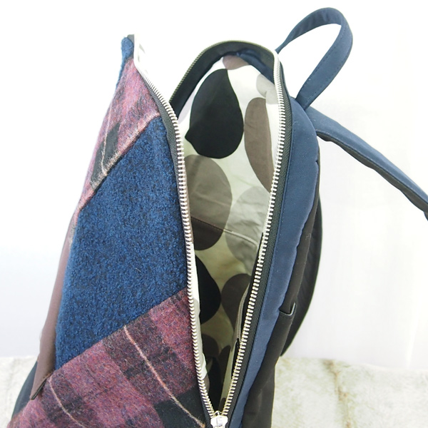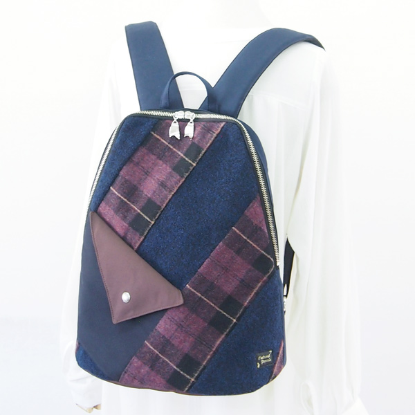 Slim Backpack * Wool Purple Check & Navy(スリムなリュック・ウールの紫チェック柄と紺)
