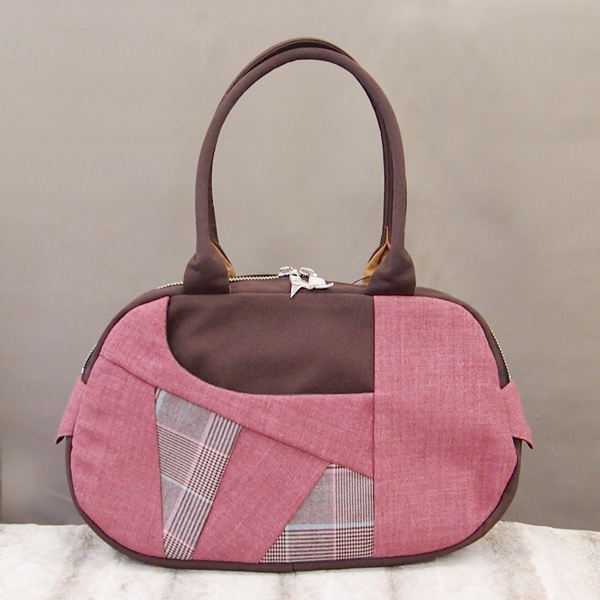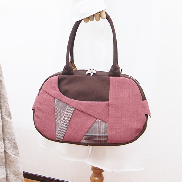 Oval Boston * Dark Pink Check(楕円ボストン・ピンクとチェック柄)