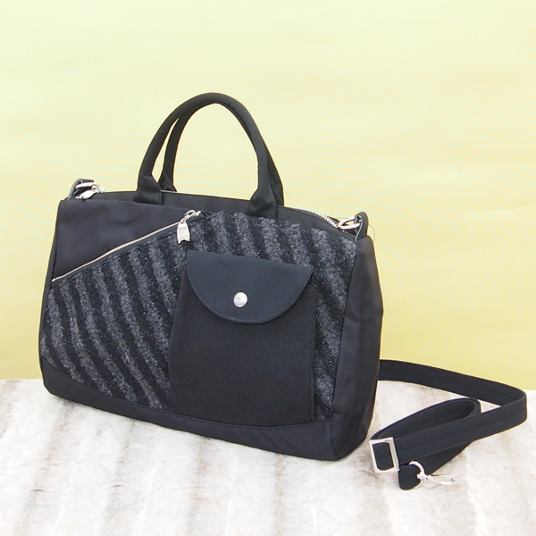 2WAY BAG WIDE * Black Gray Border(2WAY 横長・黒グレーボーダー)