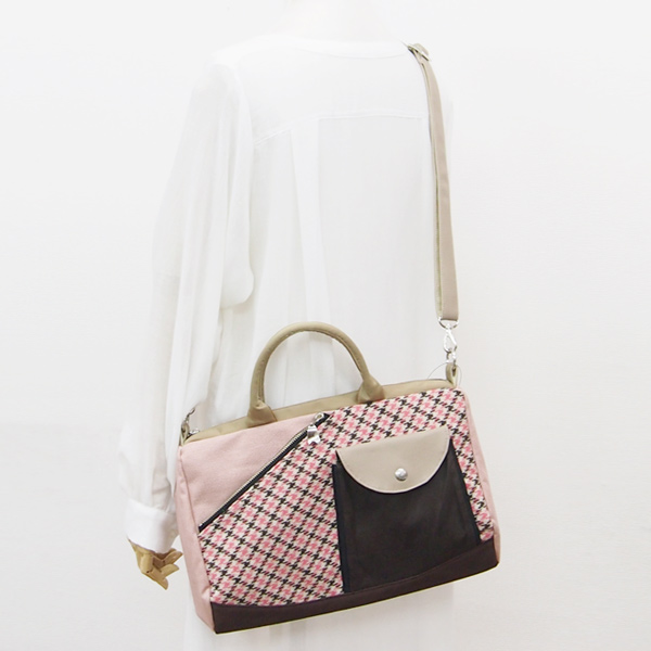 2WAY BAG WIDE * Soft Pink Check(2WAY 横長・ピンクチェック柄)