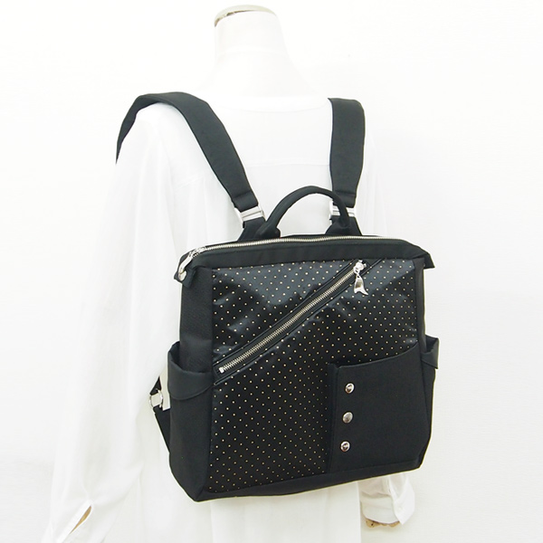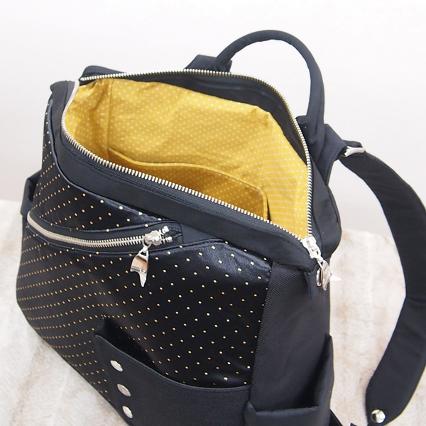 Square Backpack * Gold Dot Black(四角いリュック・金ドット柄の黒)