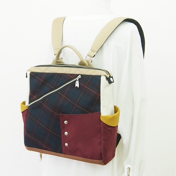 Square Backpack * Dark Red Check(四角いリュック・濃い赤のチェック柄)