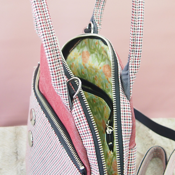 内側には、ファスナーポケットが1つと、小ポケットが2つあります。