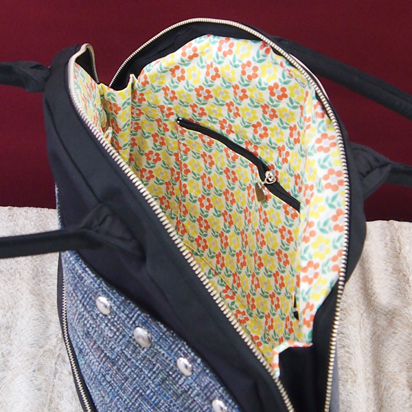内側には、ファスナーポケットが1つと、小ポケットが2つ付いています。