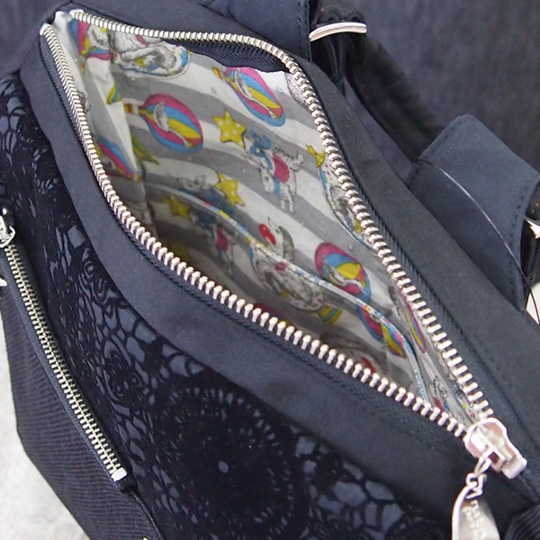 表の小さいファスナーポケットはレシートやアメちゃんなど、