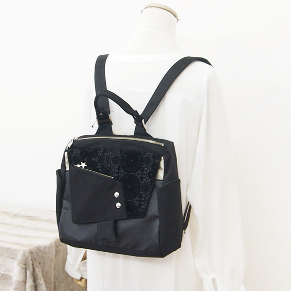 Square Backpack S * Black Flower(四角いリュックS・黒花柄)
