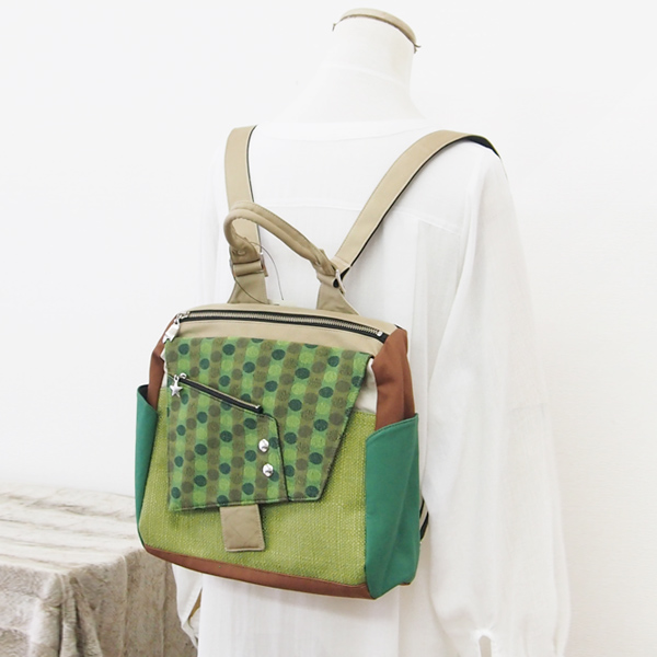 春先や初夏にも持ちたい黄緑色のリュックです。
