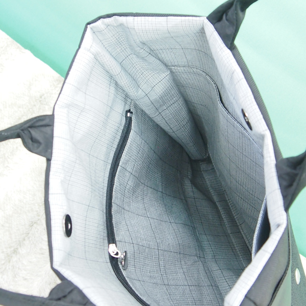 内側には、ファスナーポケットが1つと、小ポケットが2つあります。