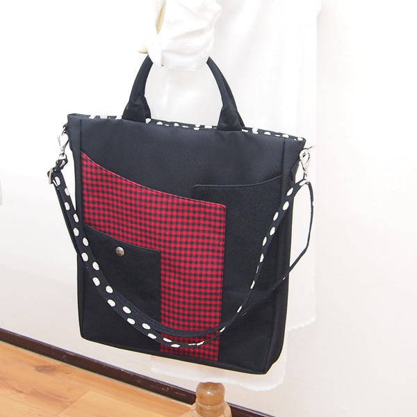 2WAY BAG Long * Red Black Check (2WAY 縦長・赤黒チェック柄)