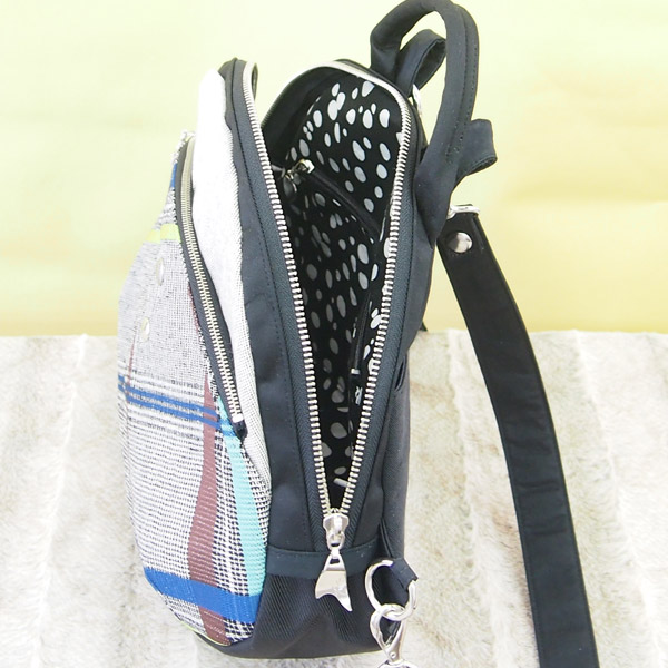 内側には、ファスナーポケットが1つと、小ポケットが2つあります。
